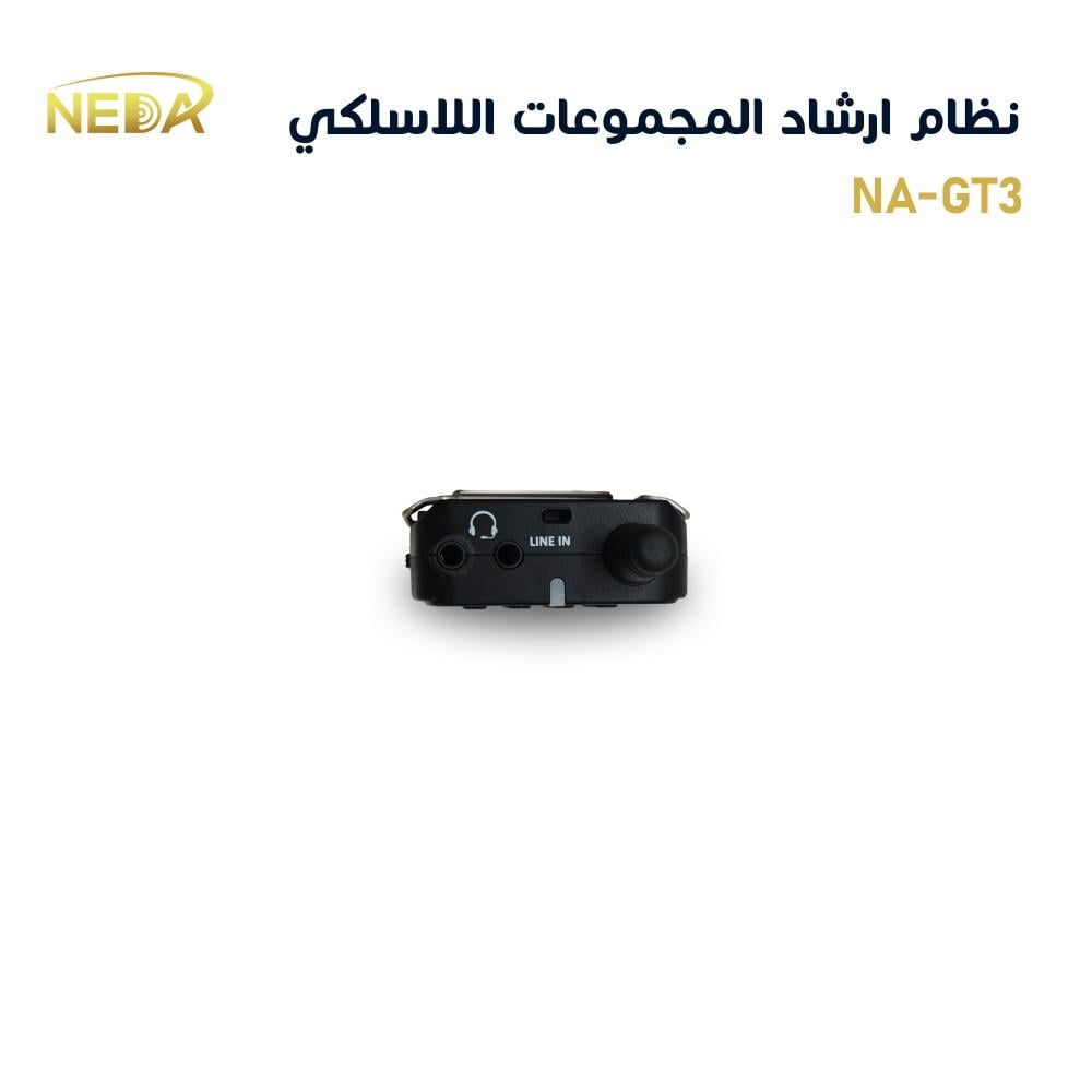 - خصائص المرسل (NA-GT3): ميكروفون سلكي رأسي, منفذ 3.5 مم Line in, بث من الذاكرة الداخلية 16 جيجا بايت MP3, يدعم تشغيل 41 لغة, منفذ Type-C للشحن أو نقل الملفات الصوتية.
